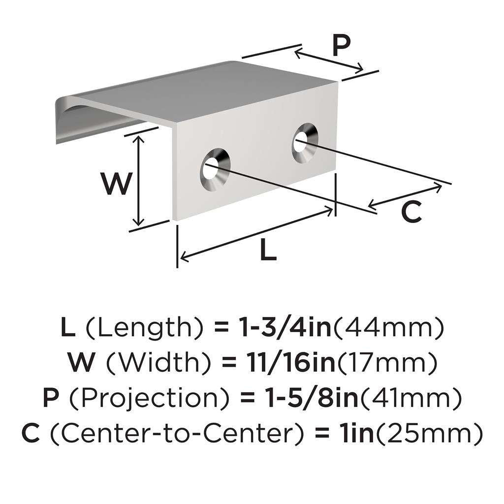 - Center to Center: 1 in (25mm), Length: 1-3/4 in (44mm), Width: 11/16 inch, Projection: 1-5/8 inch