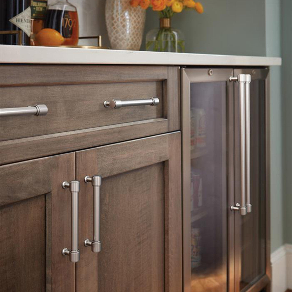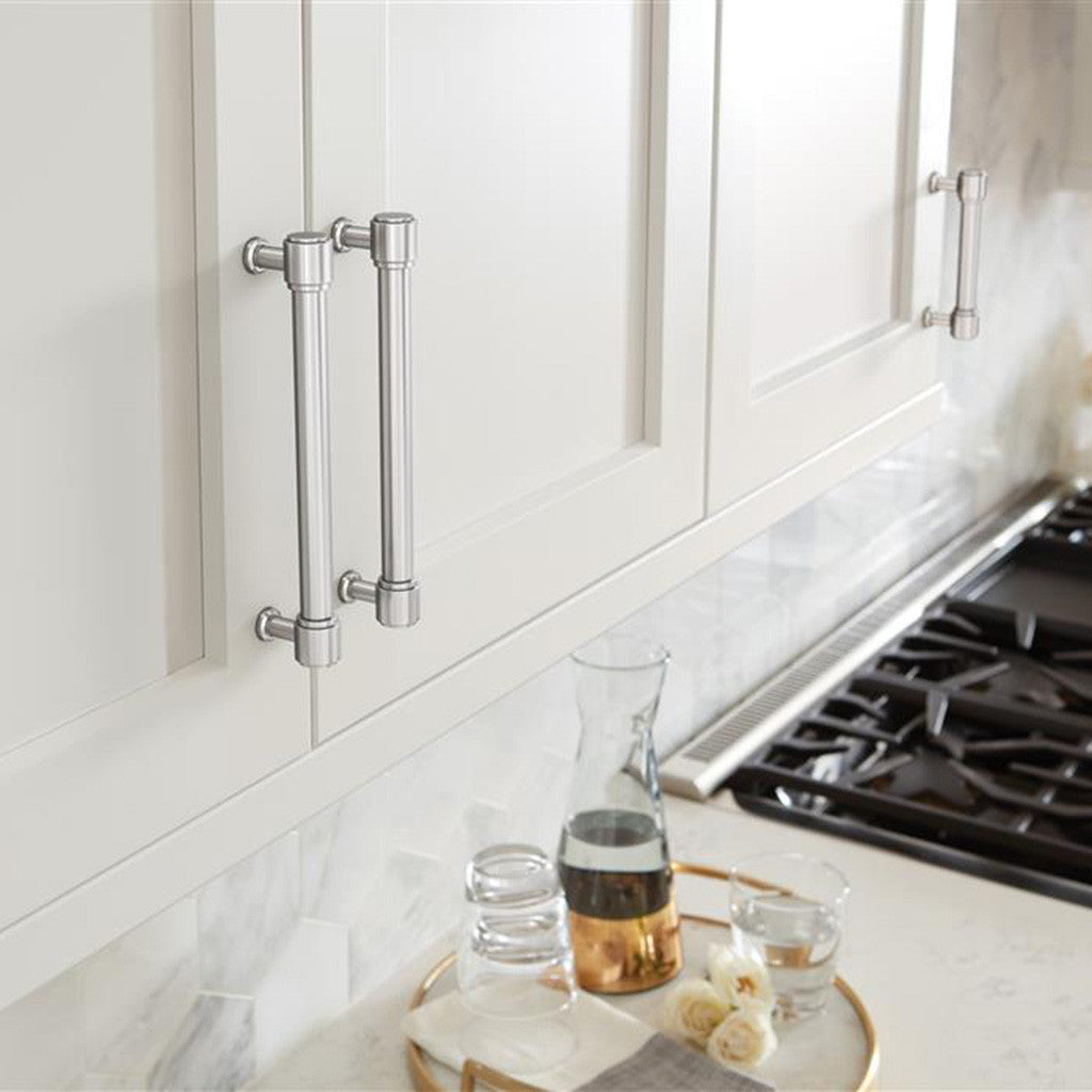 The Faircrest collection features traditional details on a modern bar pull form that make it a great choice for any space. Much like the Hickory Hardware Piper collection, these pieces have clean lines and soft edges to create a timeless pieces but also modern. Matching knobs, handles, and appliance pulls available.