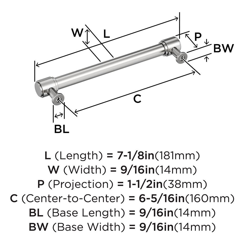 - Center to Center: 6-5/16 inch (160mm), Length: 7-1/8 inch, Width: 9/16 inch, Projection: 1-1/2 inch
