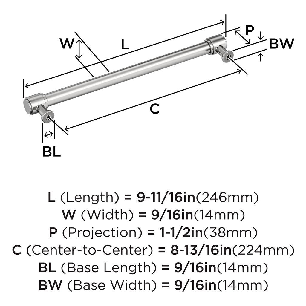 - Center to Center: 8-13/16 inch (224mm), Length: 9-11/16 inch, Width: 9/16 inch, Projection: 1-1/2 inch