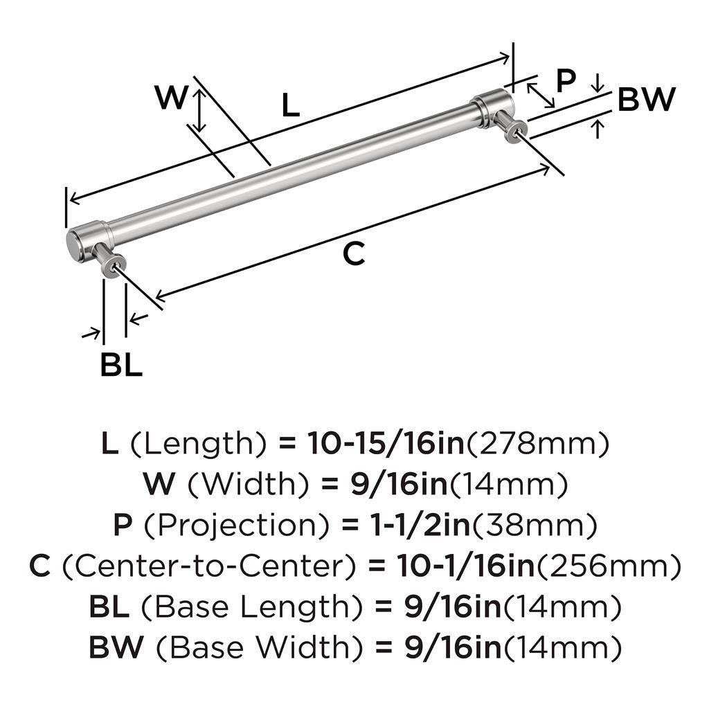 - Center to Center: 10-1/16 inch (256mm), Length: 10-15/16 inch, Width: 9/16 inch, Projection: 1-1/2 inch