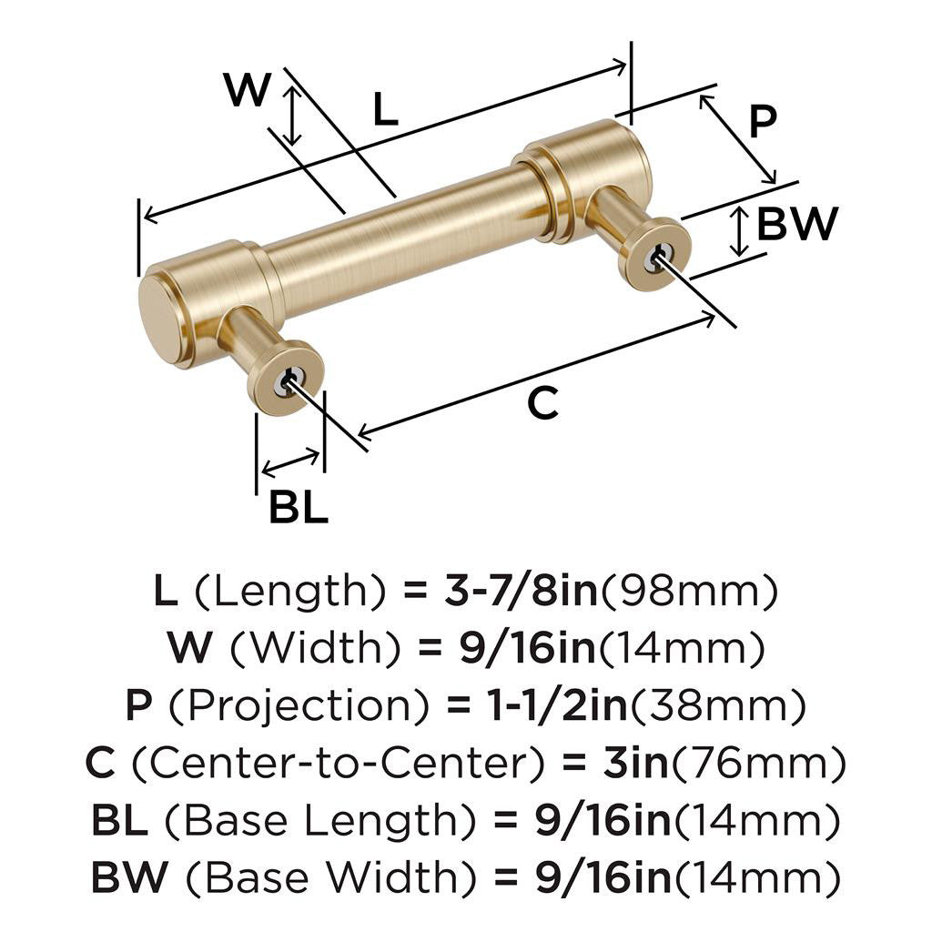 - Center to Center: 3 inch (76mm), Length: 3-7/8 inch, Width: 9/16 inch, Projection: 1-1/2 inch