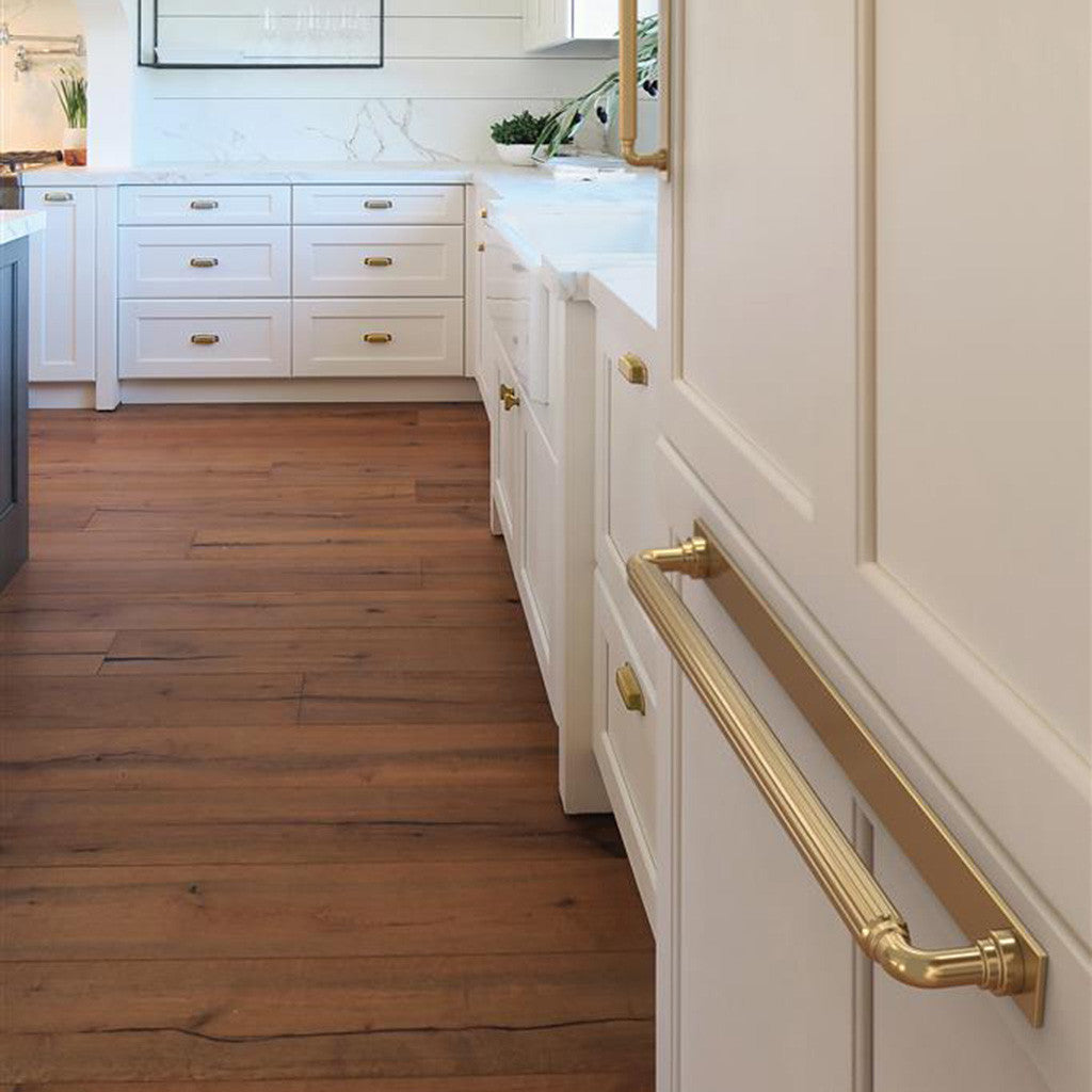 Modern straight edge design, the Amerock Ladera collection is a great way to add extra texture to your hardware and to hide previous holes and blemishes.