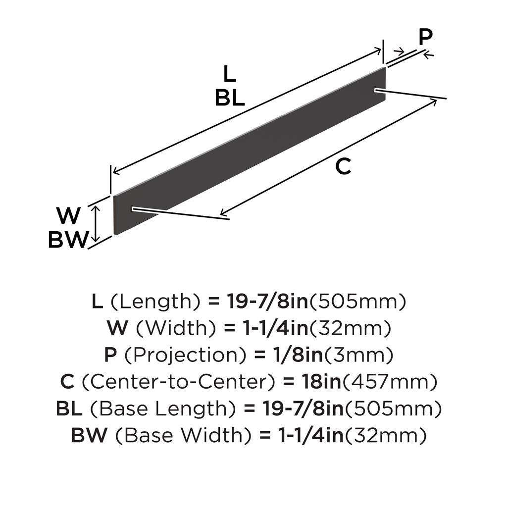 - Center to Center: 18 inch (457mm), Overall Length: 19-7/8 inch
