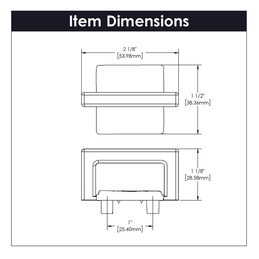 - Center to Center: 1 in, Length: 2-1/8 in, Width: 1-1/8 in, Projection: 1-7/16 in