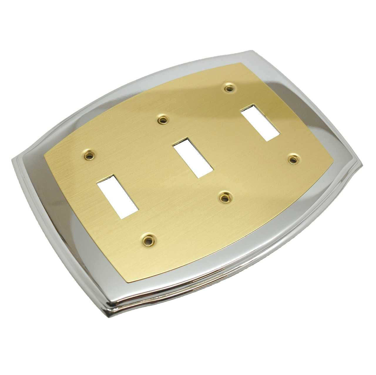 AMEROCK Accents Solid Brass Triple Toggle Switch Plate - Polished Brass & Chrome