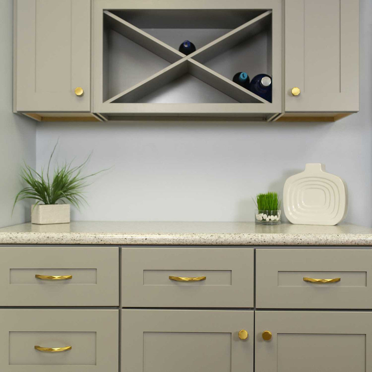 Inspired by modern-day jewelry and lavishly faceted diamonds, the Karat collection melds stern geometric forms with a delicate gleam. Make your kitchen, bath, or furniture the center of attention with this luxe piece!